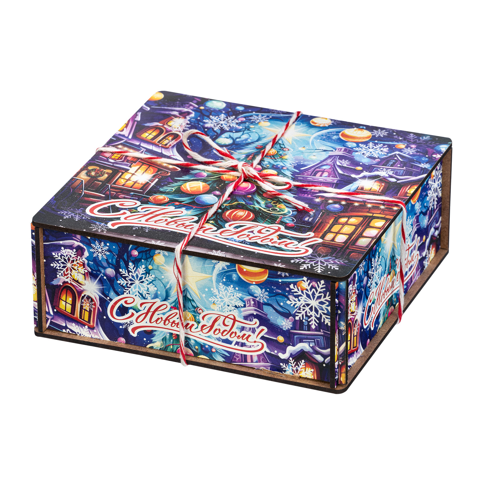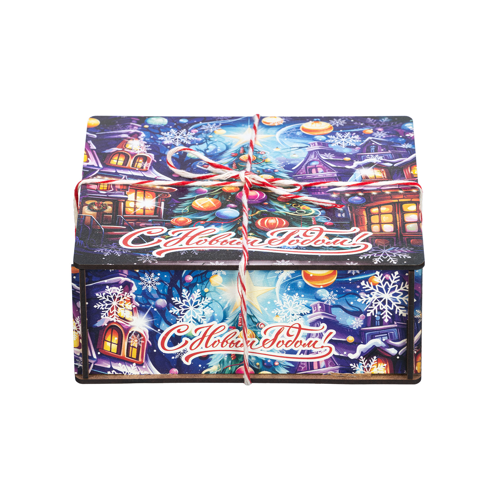 Интересный вариант новогоднего подарка – «Хрустальная Сказка». Он представлен в разделе Дерево. Отлично подойдет на подарок в 2026 году с символом Лошадь. Внутри такого презента находится кондитерский набор весом 600 граммов.