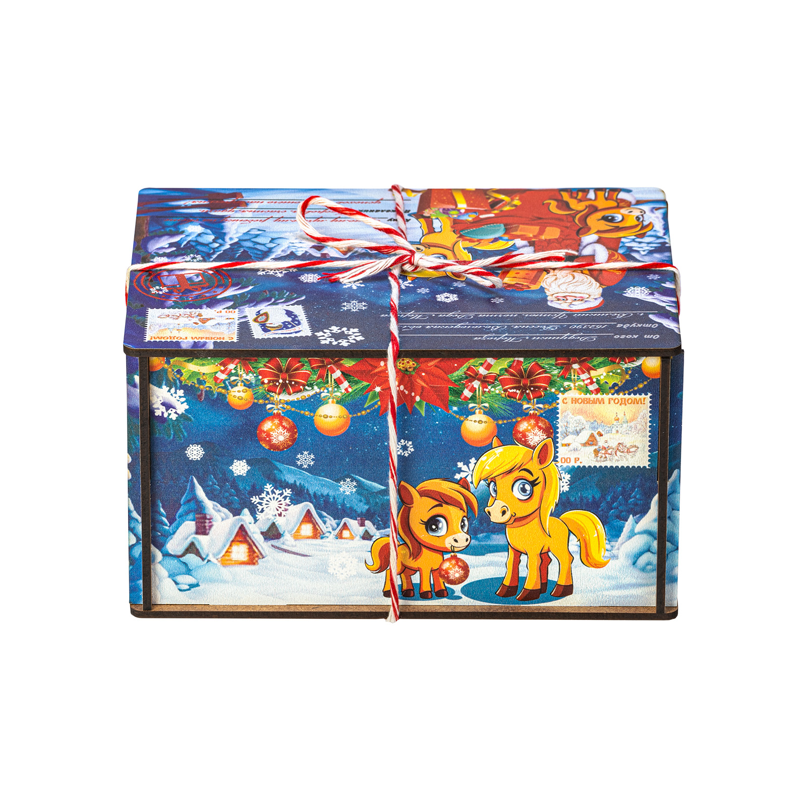 Интересный вариант новогоднего подарка – «Посылка от сказочной лошадки (Полезный состав)». Он представлен в разделе Дерево. Отлично подойдет на подарок в 2026 году с символом Лошадь. Внутри такого презента находится кондитерский набор весом 500 граммов.